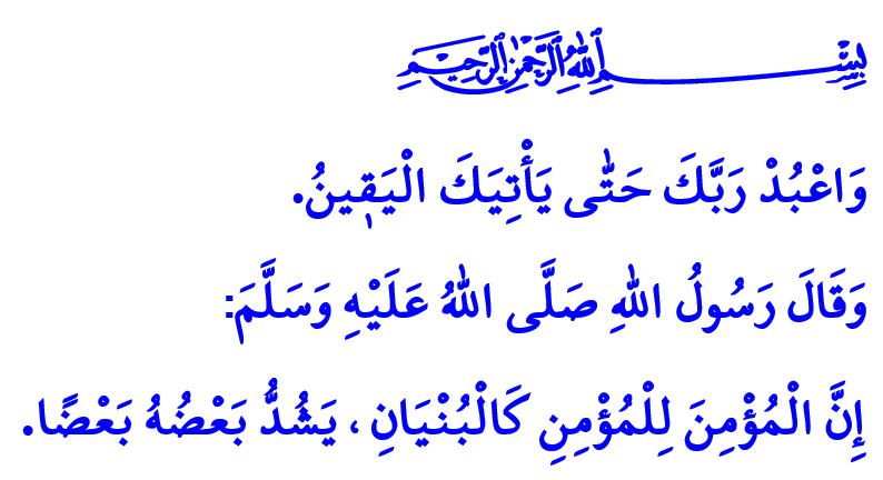 Allah Resûlü’nün “Bir mümin, diğer bir mümin için birbirini destekleyen bir binanın tuğlaları gibidir.”[1] ilkesine sadakat gösterelim.