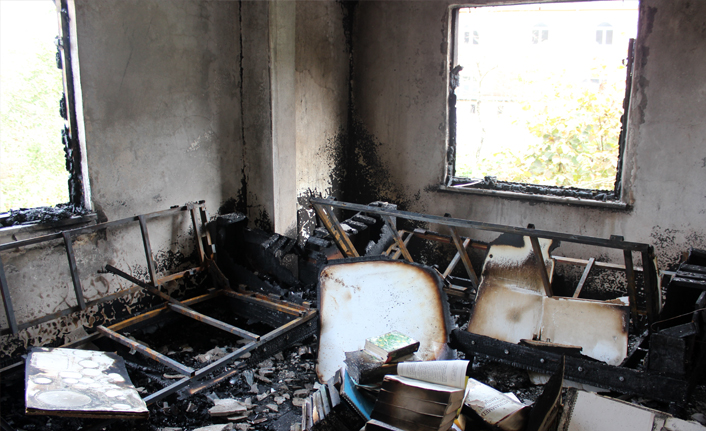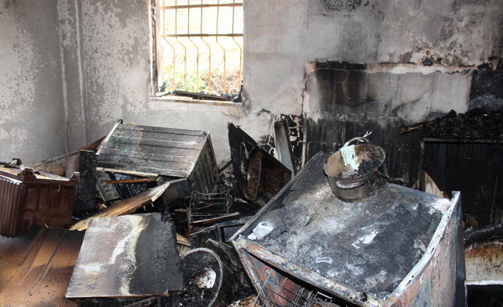Elektrik kontağından çıktığı belirlenen yangında yeni evli olan din görevlisinin eşyaları tamamen kullanılmaz hale geldi.