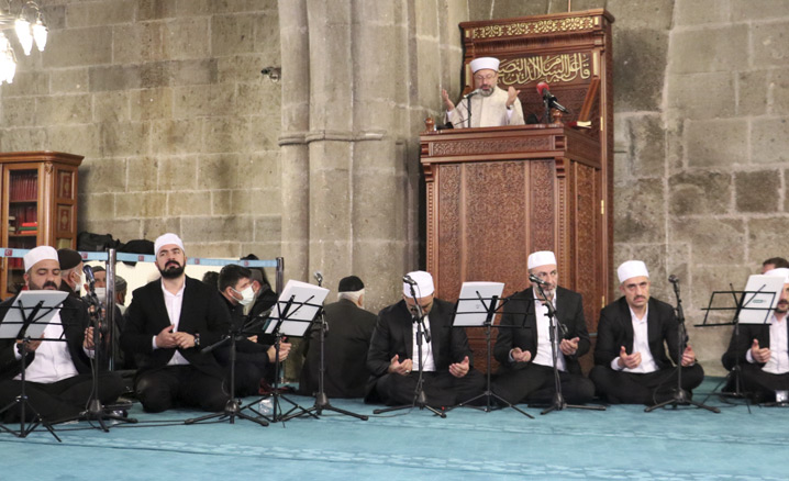 Programda Diyanet İşleri Başkanlığı Mushafları İnceleme ve Kıraat Kurulu Başkanı Hafız Osman Şahin Kur'an-ı Kerim tilavet etti, Erzurum İl Müftülüğü İlahi Korosu ilahiler seslendirdi.