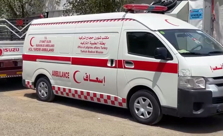 Hastalara hizmet vermek üzere 9 acil tıp teknisyeni personelinin görev yaptığı 5 ambulanslarının bulunduğunu belirten Çevik, "Bu yıl 65 yaş altındaki hacı adaylarımızın olması nedeniyle çok ciddi potansiyel hastalığı olan hastalarımız yoktu. Bu bizim için sevindirici tarafı." dedi.