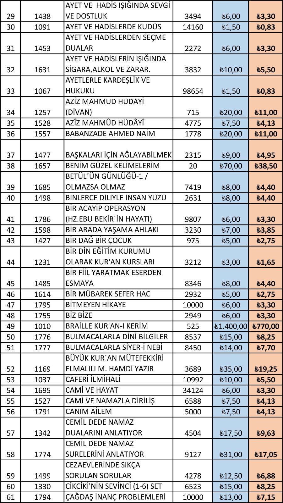Döner Sermaye İşletme Müdürlüğünden alınan bilgiye göre, Diyanet İşleri Başkanlığından çıkan tüm yayınlarda Ramazan ayı boyunca %45 indirim yapıldı.