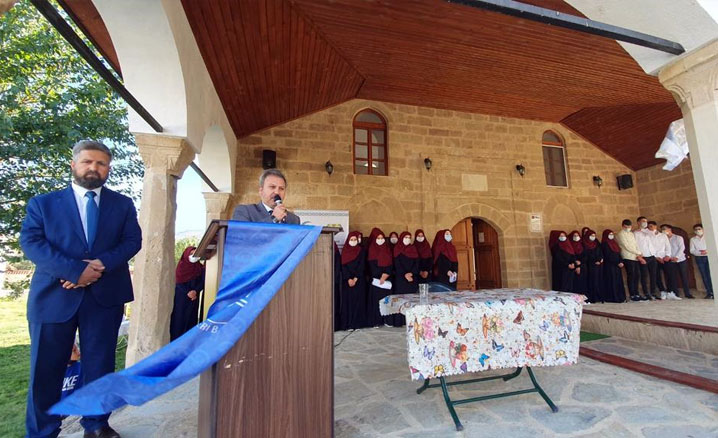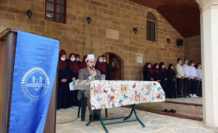 Hatim Merasimi, Ayasofya-i Kebir Camii Şerifi Müezzini Hafız Alpcan Çelik’in Kur’an tilaveti ile başladı, öğrenciler tarafından İstiklal Marşı’nın seslendirilmesi, kısa sureler ve ilahiler okunmasıyla devam etti.