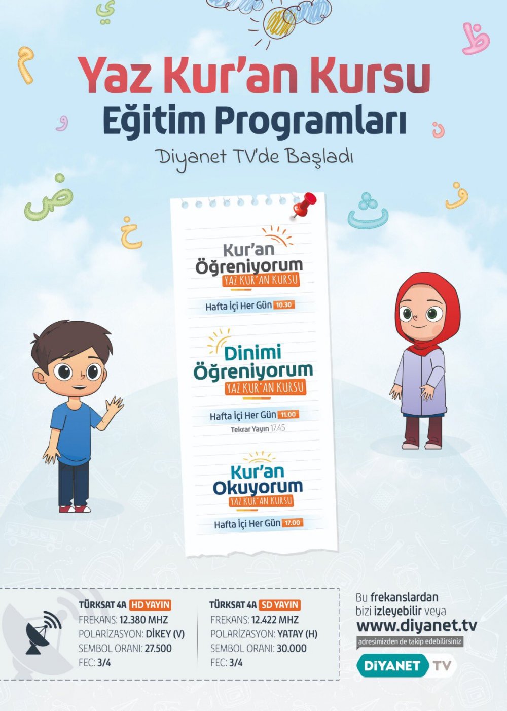 Diyanet İşleri Başkanlığı her yıl yaklaşık 3 milyon çocuğun istifade ettiği Yaz Kur'an Kurslarını bu yıl koronavirüs tedbirleri kapsamında Diyanet TV üzerinden düzenleyecek.