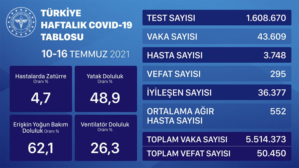 Sağlık Bakanlığı verilerine göre Türkiye'nin 1 Ağustos 2021 tarihli koronavirüs tablosu şöyle: