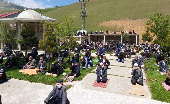 Kovid-19 tedbirleri kapsamında cemaatle ibadete belirli kurallar çerçevesinde yeniden başlanmasının ardından Siirtli vatandaşlar açık alanlarda cemaatle cuma namazı kıldı.