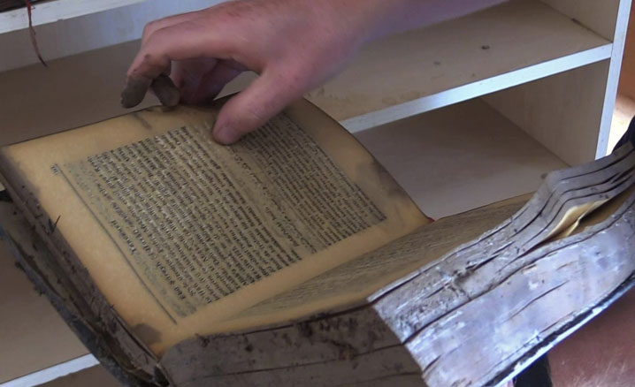 Camide balçıkla kaplanan halıları ve halıların altındaki sunta kaplamayı kaldıran ekipler, temizleme çalışmalarına başladı. Selde zarar gören kitaplar da kurtarılmaya çalışılıyor.