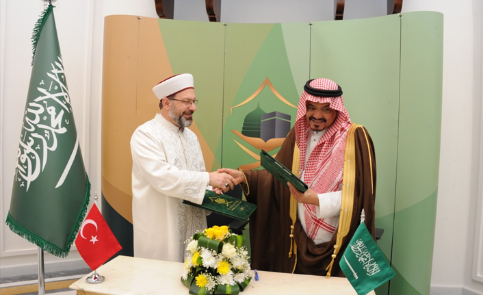 Başkan Erbaş ve beraberindeki heyet, umre ibadetini yerine getirdikten sonra Suudi Arabistan Hac Bakanı Muhammed Salih b. Tahir Benten ile hac protokolünü imzaladı.
