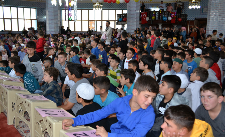 İl Müftüsü İsmail Fakirullaoğlu, okulların yaz tatiline girmesiyle camilere akın eden çocuklarla bir araya geldi.