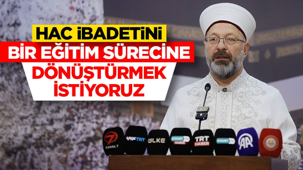 “Diyanet İşleri Başkanlığı olarak irşad, sağlık, servis başta olmak üzere birçok alanda büyük bir organizasyon yönetiyoruz. Öncelikle hac ibadetini bir eğitim ve irşat sürecine dönüştürmek istiyoruz. Bu amaçla en yetkin hocalarımızdan 71 kişilik özel bir irşat ekibimiz var. 418 kadın irşat görevlimiz var. Yine 392 kafile başkanı ve bin 840 din görevlisi hocamızla irşat faaliyeti yürütüyoruz.” şeklinde konuştu.