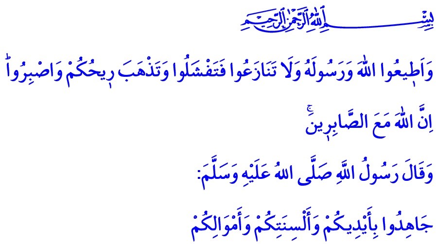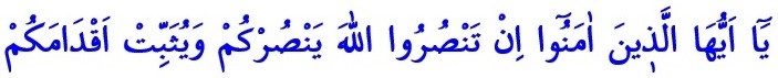 “Ey iman edenler! Eğer siz Allah'ın dinine yardım ederseniz O da size yardım eder, ayaklarınızı kaydırmaz.”[3] ilâhî fermanıdır.