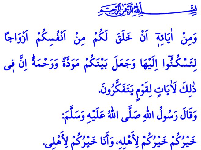 Okuduğum ayet-i kerimede Yüce Rabbimiz şöyle buyuruyor: “İçinizden kendileri ile huzura kavuşacağınız eşler yaratıp aranızda muhabbet ve rahmet var etmesi, O’nun varlığının delillerindendir. Bunda düşünen bir toplum için elbette ibretler vardır.”[1]