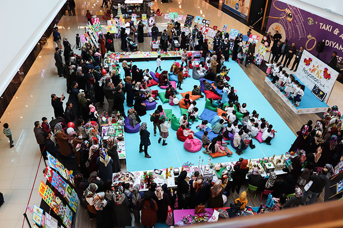 Derslerde yapılan etkinliklerden ortaya çıkartılan eserler, alışveriş merkezinde sergilendi.