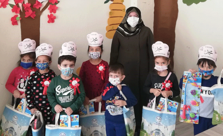 Hafta boyunca gerçekleştirilen etkinliklerde 61 kursta bin 300 çocuğa hediye paketi dağıtıldı.