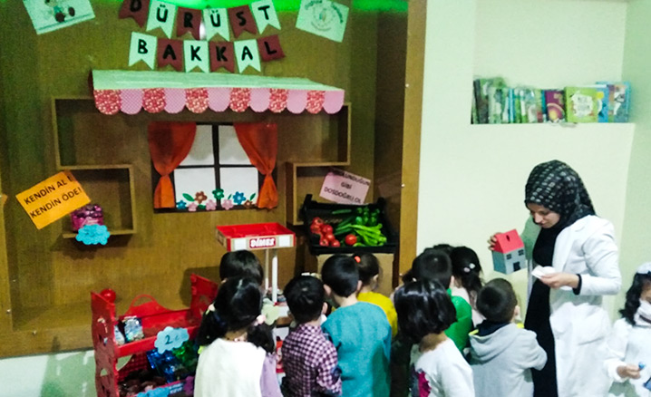 Tokat İl Müftülüğüne bağlı Bedestenlioğlu 4-6 yaş Kur’an Kursu ve Saliha Hatun 4-6 yaş Kur’an Kursu öğreticileri, çocukların doğruluk bilincini geliştirmeleri amacıyla çeşitli yiyecek ve içeceklerin bulunduğu “Dürüst Bakkal” projesini hayata geçirdi.