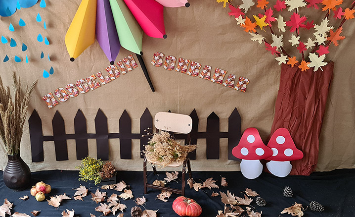 "O’nun bilgisi dışında bir yaprak bile düşmez. (En'am 59)" Ayet-i Kerimesinden hareketle gerçekleştirilen etkinlikte öğrencilerin kainattaki sanat-ı ilahiyi farkedebilmeleri için kurslardaki panolar sonbahar figürleriyle süslendi.