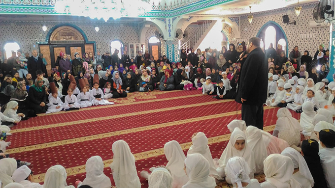 Ardından camiyi dolduran velilere hitap eden Antakya İlçe Müftüsü Necati Şafak, Osmanlı’da halk arasında “âmin alayı” olarak adlandırılan bu törene “bed’-i besmele cemiyeti” de denildiğini belirterek şöyle devam etti: