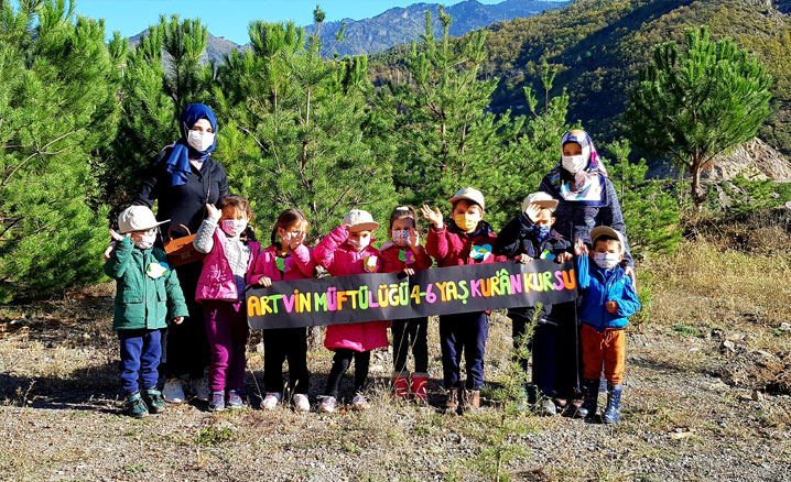 Artvin Müftülüğüne bağlı 4-6 yaş Kur’an kurslarında eğitim gören öğrenciler, "Milli Ağaçlandırma Günü" kapsamında fidan dikme etkinliğine katıldı.