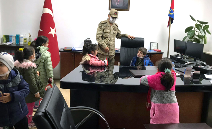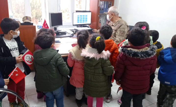 Çocuklara vatan sevgisinden bahseden İlçe Jandarma Komutanı Deniz, askerlik ile ilgili de bilgi verdi.
