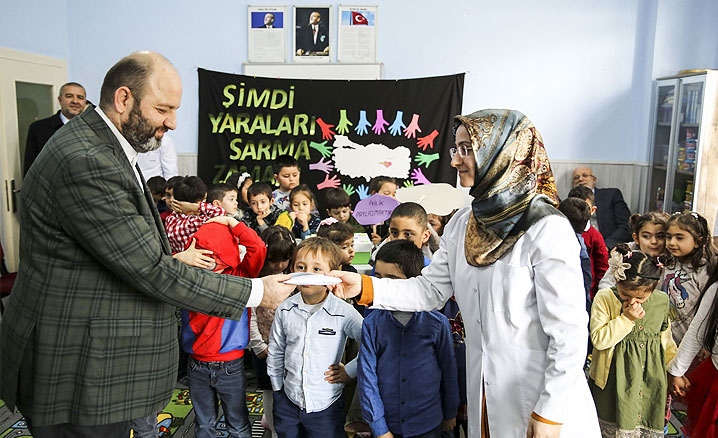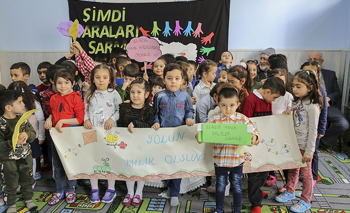 Türkiye’nin dört bir yanında Diyanet İşleri Başkanlığına bağlı 4-6 yaş Kur’an kurslarında eğitim gören öğrenciler, Diyanet İşleri Başkanlığı ile Türkiye Diyanet Vakfı iş birliğinde yürütülen “Şimdi Yaraları Sarma Zamanı” kampanyası kapsamında, depremden etkilenen aileler için yardım topladı.