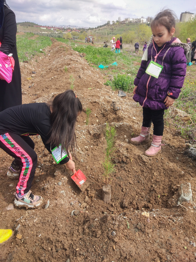 Çankaya Müftülüğü 4-6 yaş grubu Kur’an kursları öğrencileri, Atatürk Orman Çiftliği yerleşkesinde İlçe Müftülüğü için ayrılan alana fidanlarını diktiler.
