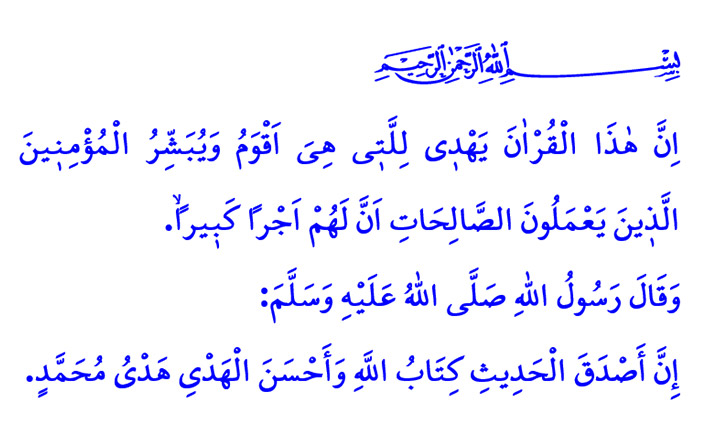 Okuduğum hadis-i şerifte Peygamber Efendimiz (s.a.s) şöyle buyuruyor: “Sözlerin en doğrusu, Allah’ın Kitabı; hâl ve tavrın en güzeli ise Muhammed’in hâl ve tavrıdır.” (2)