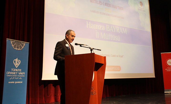 Kars İl Müftülüğünce "Mevlid-i Nebi ile Camiler ve Din Görevlileri Haftası" münasebetiyle "Peygamberimiz, Cami ve İrşat" konulu konferans düzenlendi.