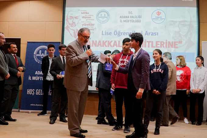 İl merkezinde ve ilçelerde yapılan elemelerde birinci olan öğrencilerin katıldığı yarışma programında konuşan Adana Müftüsü Hasan Çınar, “Diyanet İşleri Başkanlığı tarafından Türkiye geneli düzenlenen liseler arası Mehmet Akif Ersoy’un “Çanakkale Şehitlerine” isimli şiirini ezbere güzel okuma yarışmasını ilimiz de düzenledik. Dereceye giren arkadaşları tebrik ediyorum.” dedi.