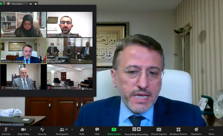 Aile ve Dini Rehberlik Daire Başkanı Sema Yiğit’in açış konuşmasının ardından söz alan Din Hizmetleri Genel Müdürü Bünyamin Albayrak, Başkanlığın ailenin kurulması, korunması ve güçlendirilmesine yönelik gerçekleştirdiği çalışmalarda, Aile ve Dini Rehberlik Bürolarının önemine ve katkısına değindi. 2019 - 2020 yıllarında İstanbul ve 39 ilçesinde ailelere yönelik sunulan hizmetleri değerlendiren Albayrak, katılımcılara teşekkür etti.