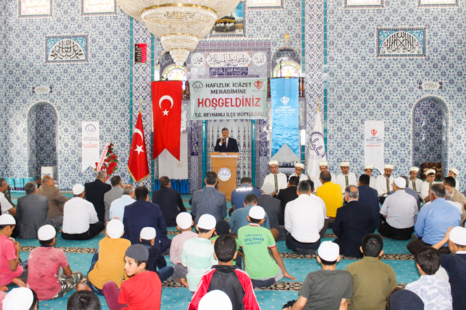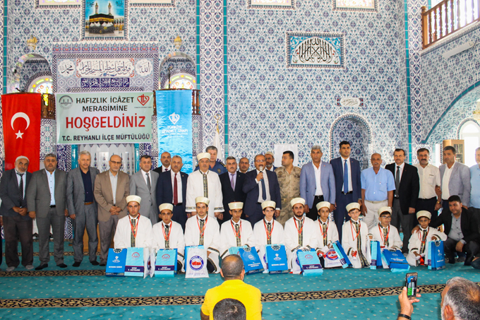 Hatay Reyhanlı İlçe Müftülüğüne bağlı Cuma Sepetçi Yatılı Erkek Kur’an Kursu’nda hafızlıklarını tamamlayan öğrenciler için Reyhanlı Tevhid Camii’nde “Hafızlık İcazet Merasimi” düzenlendi.