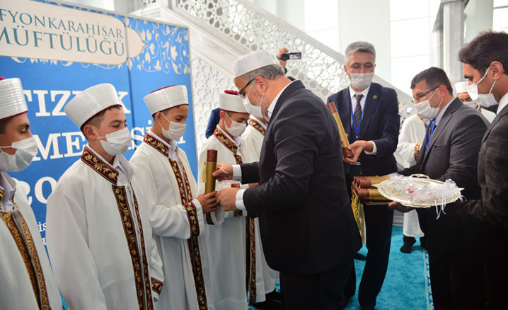Afyonkarahisar İl Müftülüğü tarafından Salar Fatih, İsmailköy ve Sahipata Erkek Kur'an Kurslarında hafızlığını tamamlayan 155 öğrenci için “Hafızlık İcazet Merasimi” düzenlendi.