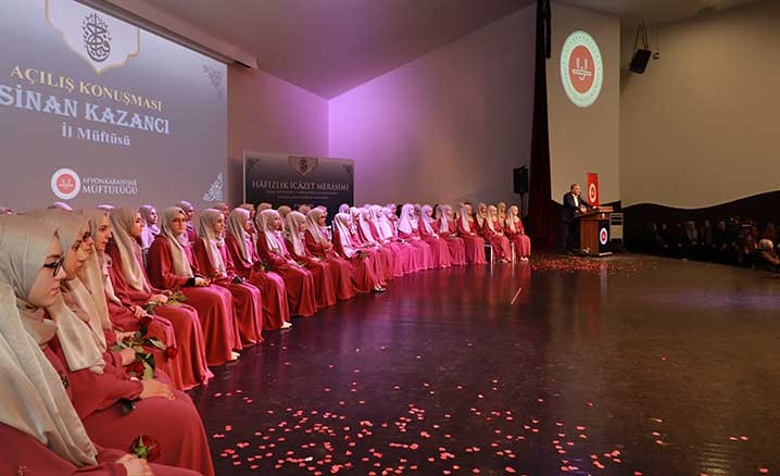 Afyonkarahisar’da hafızlığını tamamlayan kız öğrenciler için hafızlık icazet programı gerçekleştirildi.