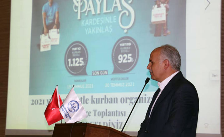 Bu kapsamda Gaziantep’te "Türkiye Diyanet Vakfı 2021 Yılı Vekalet Yoluyla Kurban Kesim Organizasyonu Tanıtım ve İstişare Toplantısı" düzenlendi.