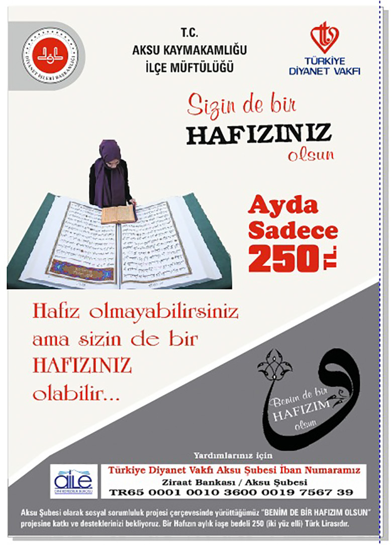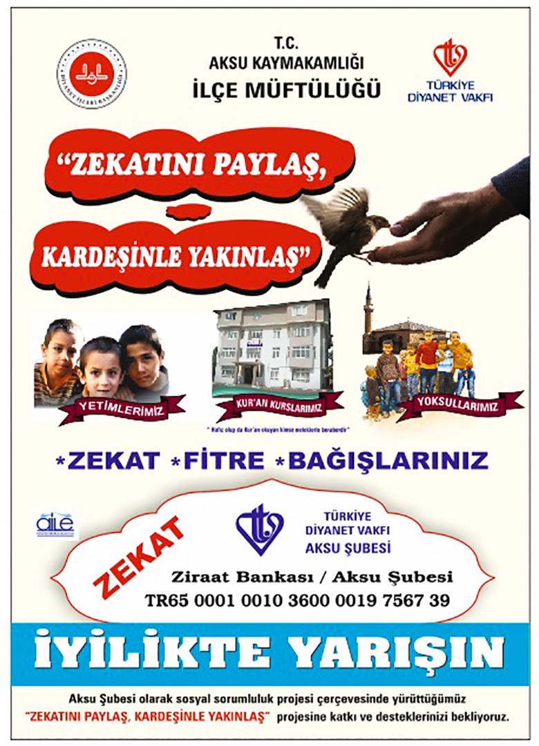 Aksu İlçe Müftülüğü tarafından geliştirilen; "Zekatını Paylaş, Kardeşinle Yakınlaş" ve "Benim de Bir Hafızım Olsun" projeleri, Diyanet İşleri Başkanlığı Din Hizmetleri Genel Müdürlüğü tarafından onaylandı.