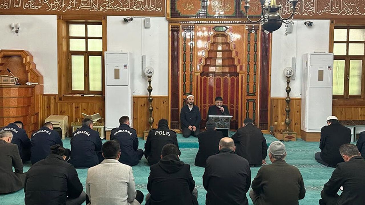 Alaplı İlçe Müftülüğünce Çanakkale Zaferi’nin 111. yıl dönümü münasebetiyle Alaplı Merkez Camii’nde düzenlenen programda din görevlileri tarafından okunan 450 Hatm-i Şerif'in duası yapıldı.