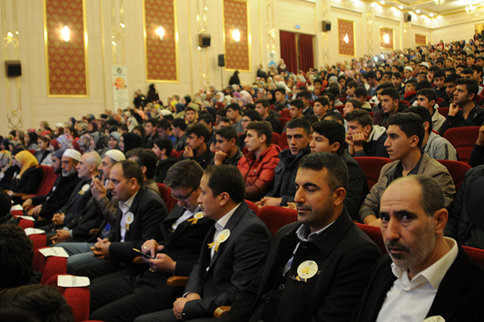 Burada konuşan Albayrak, âlemlere rahmet olarak gönderilen Muhammed Mustafa sevdası için bir araya geldiklerini ifade ederek "Nasıl ki yağmur yağarken hiç kimseyi ayırt etmezken falan ağanın, aşiretin, köyün bağı bahçesi demeden bütün insanlara sağanak bir yağmur olarak yağıyorsa, Muhammed Mustafa'nın rahmeti de bütün insanlığa gönderilmiştir." diye konuştu.