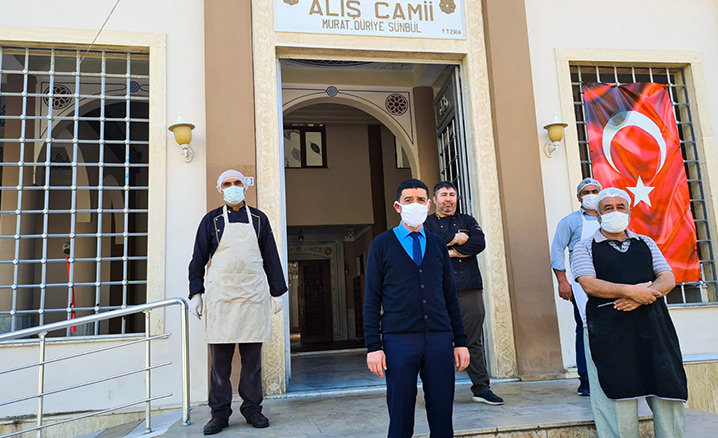 Din görevlileri Süleyman Coşkun ve Turgut Beden öncülüğünde camide hazırlanan yemekler, camiye gelen vatandaşlara ikram edilirken gelemeyen ihtiyaç sahiplerinin de evlerine teslim ediliyor.
