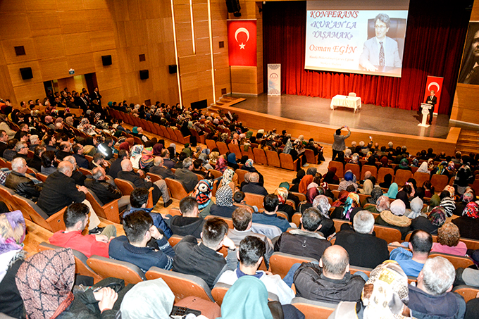 Müftü Ali Hayri Çelik’in konuşmasının ardından Haseki Abdurrahman Gürses Eğitim Merkezi Müdürü Osman Egin'in “Kur’an’la Yaşamak” konulu konferansı başladı: