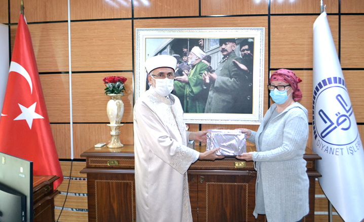 İl Müftüsü Yaman, Kelime-i Şehadet getirerek Müslüman olan Manuela’ya “İhtida Belgesi” ile birlikte Kur’an-ı Kerim hediye etti.