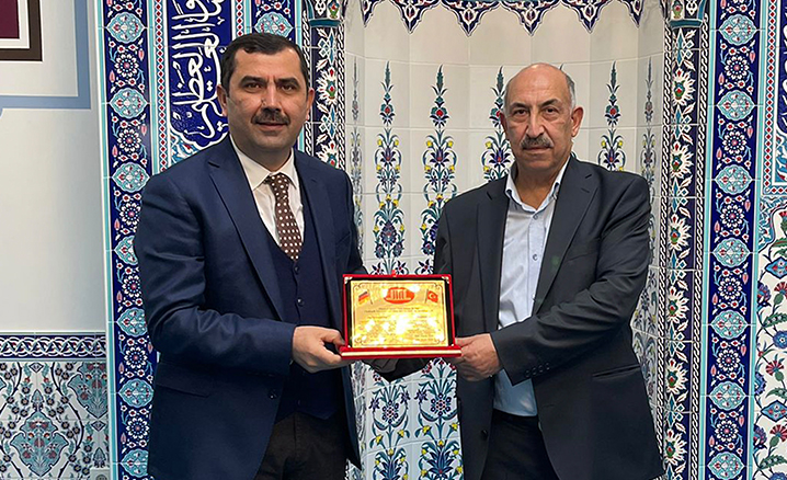 DİTİB Genel Başkanı Türkmen, caminin yapımı ve hayata geçirilmesinde emeği geçenler adına Dernek Başkanı Yusuf Aydın'a plaket takdim etti.