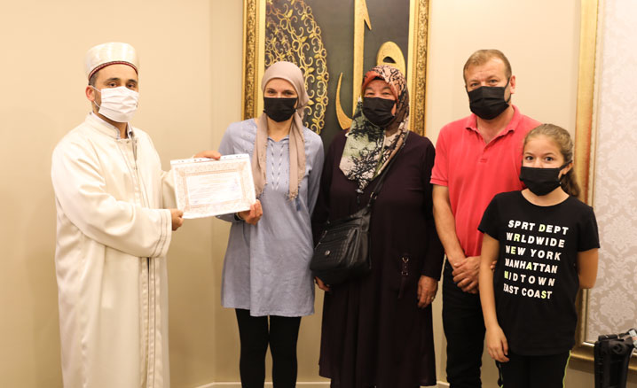 Kur'an-ı Kerim tilaveti ile başlayan törende İl Müftü Vekili Mehmet İzci, Alice'ye İslam dininin temel esasları ile ilgili bilgi verdi.
