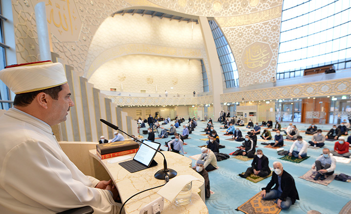 Köln DİTİB Merkez Camii’nde maske, mesafe ve hijyen kurallarına uyularak bayram namazı eda edildi.