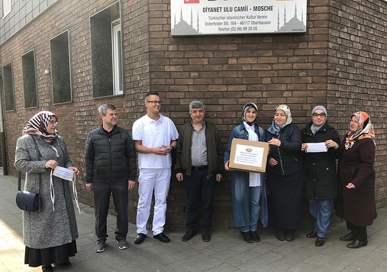 DİTİB’e bağlı Bad Kreuznach, Betzdorf, Lemgo, Oberhausen-Osterfeld, Rheinböllen, Völklingen ve Werl cami derneklerinin kadınlar kolu üyeleri korona virüs nedeniyle evlerinden gönüllü olarak maske dikiyor.
