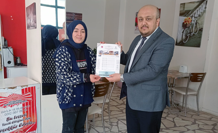 İçli, ziyaret sonunda esnafa Altınyayla İlçe Müftülüğünce hazırlanan 2022 Ramazan İmsakiyesi ve 40 Hadis Ramazan Kartelası takdim etti.