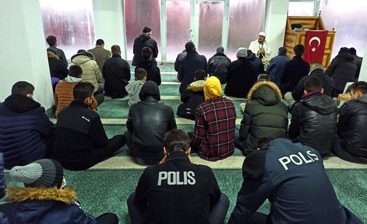 Sabah namazı öncesinde İlçe Müftüsü Mehmet Zahid İçli gençlerle sohbet etti.