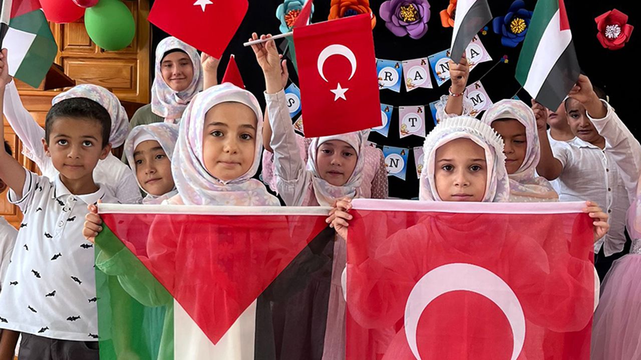 Etkinlikte Filistin ilahi dinletisi sunuldu, Filistin bayrağı açılarak Gazze’de yaşanan soykırıma dikkat çekildi.