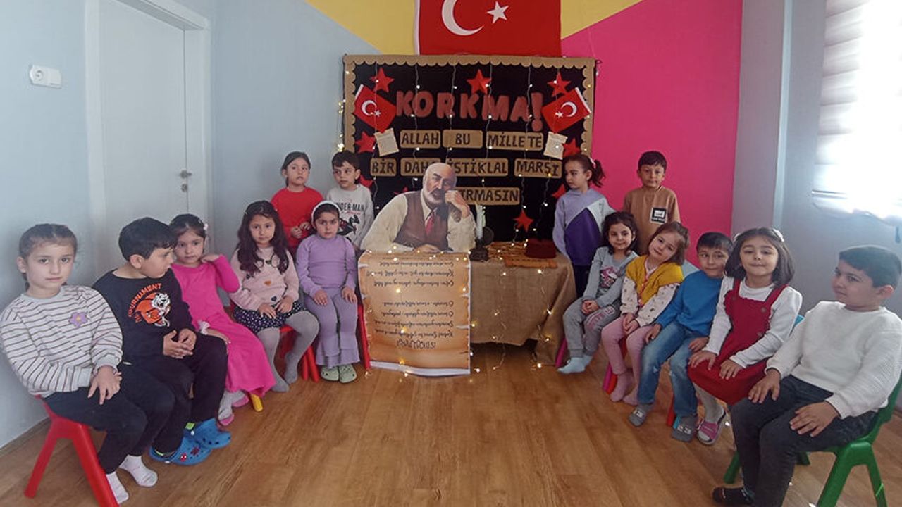 Anamur İlçe Müftülüğüne bağlı 4-6 yaş Kur’an kursu öğrencileri tarafından hazırlanan etkinlikte, milli mücadelenin ruhu ve İstiklal Marşı’nın taşıdığı anlam minik yüreklerin diliyle anlatıldı.