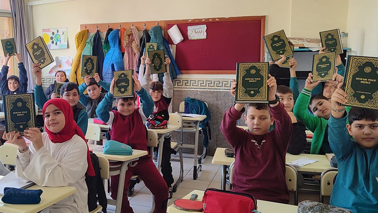 Bu kapsamda Cengiz Topel Ortaokulu’nda gerçekleştirilen programda, Kur’an-ı Kerim dersini seçen 50 öğrenciye Kur’an-ı Kerim takdim edildi.