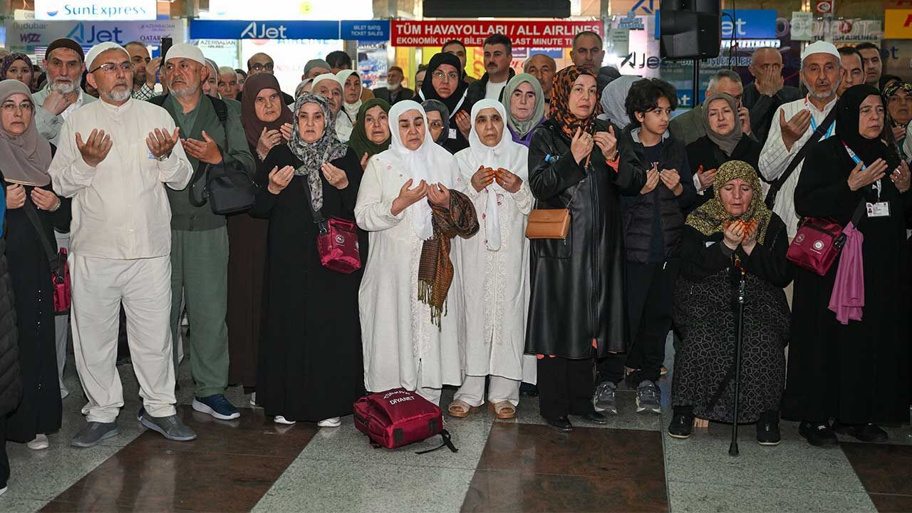 İlk kafiledeki hacı adayları ve Diyanet İşleri Başkanlığı görevlileri, pasaport kontrolü ve işlemlerin tamamlanmasının ardından dualar ve gözyaşlarıyla uğurlandı.