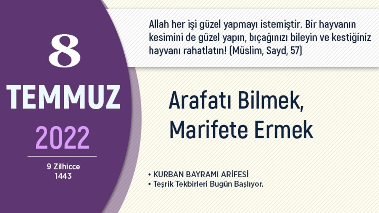 Arafat, zamanların en bereketlisi olan arefe günü, mekânların en mübareği olan Arafat’ta, Rahmân’ın rahmetine nail olabilmek, bütün Müslümanların derdine derman bulabilmek, günahlardan sıyrılıp gözyaşlarıyla dolabilmek, cehaletten kurtulup marifetullah ile olabilmek için, bir irfan ve marifet mektebidir. Arafat’ı idrak eden hacı olur, Arafat’ı kavrayan marifeti bulur.