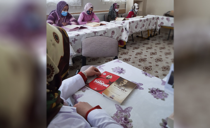 Hacı Hüseyin Efendi Kız Kur’an Kursu Öğreticisi Ayşe Yıldız koordinesinde gerçekleştirilen etkinlikte, Kur’an kursu öğrencileriyle "Safahat" okumalay yapıldı.